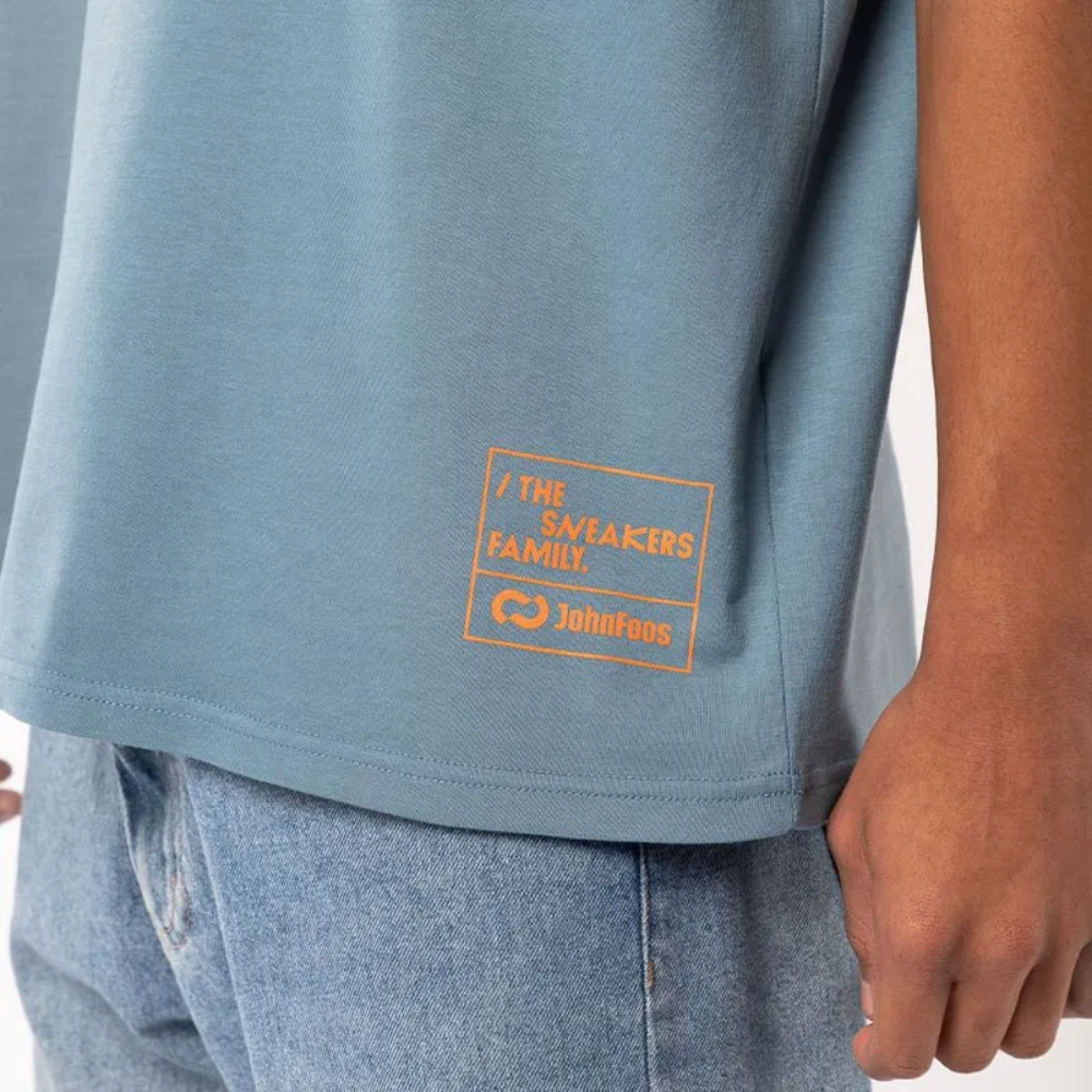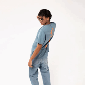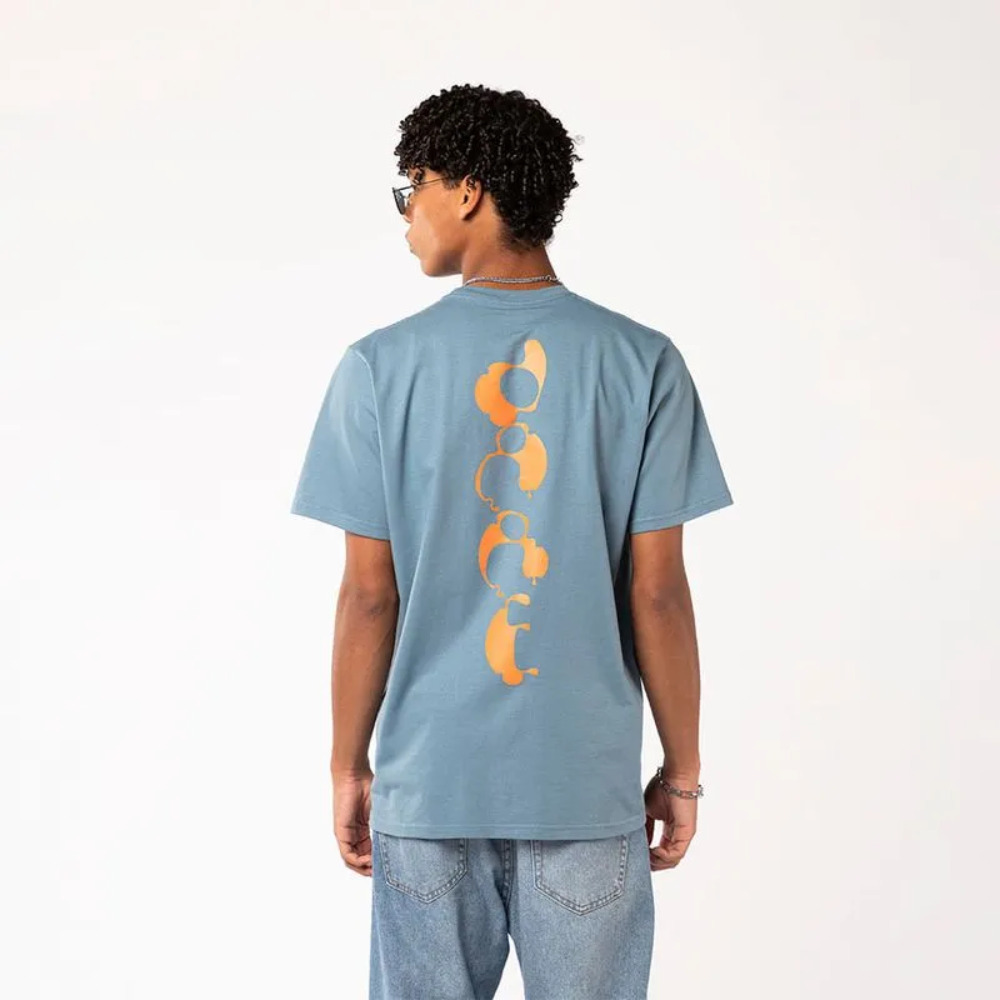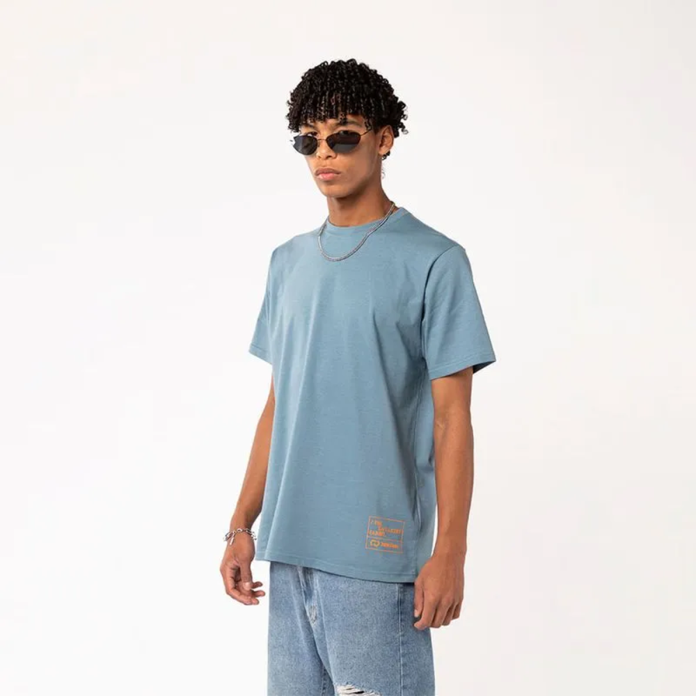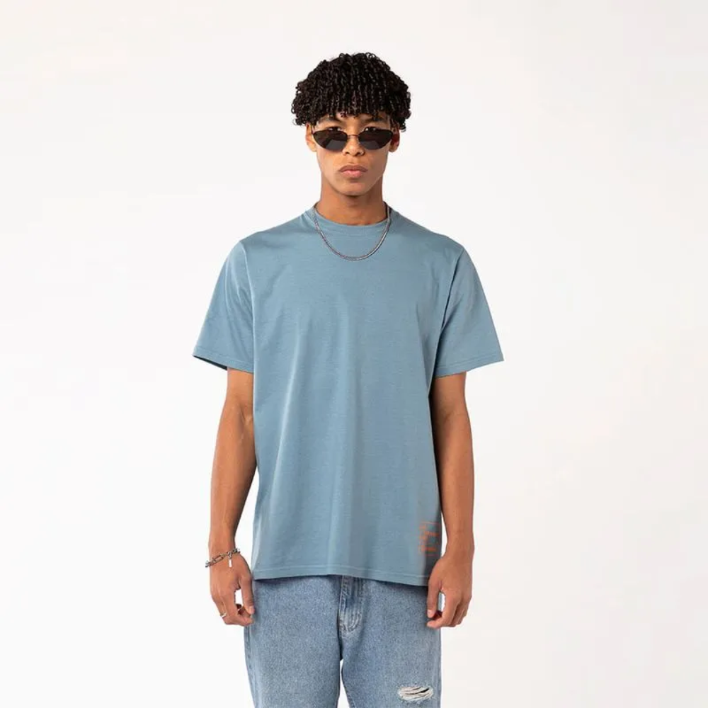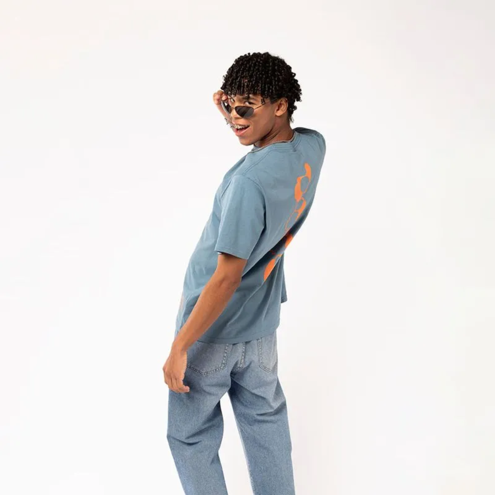 Remera amplia, fresca y liviana, color azul claro se destaca por su print naranja, su calce relajado y su algodón premium. Perfecta para los que se animan a más.