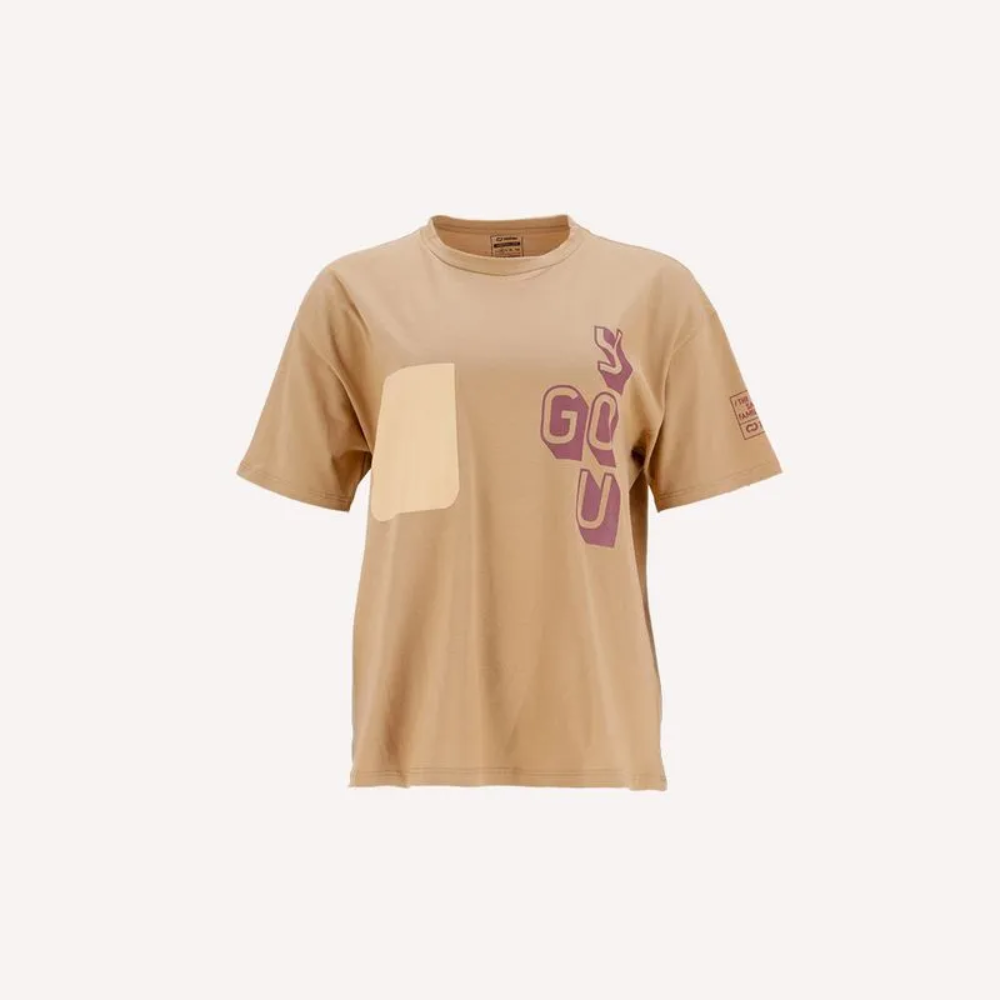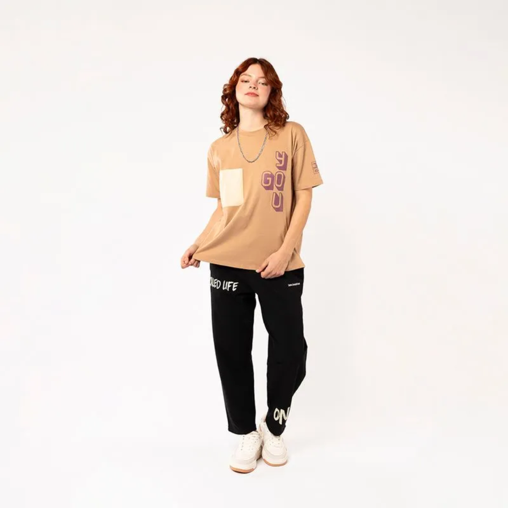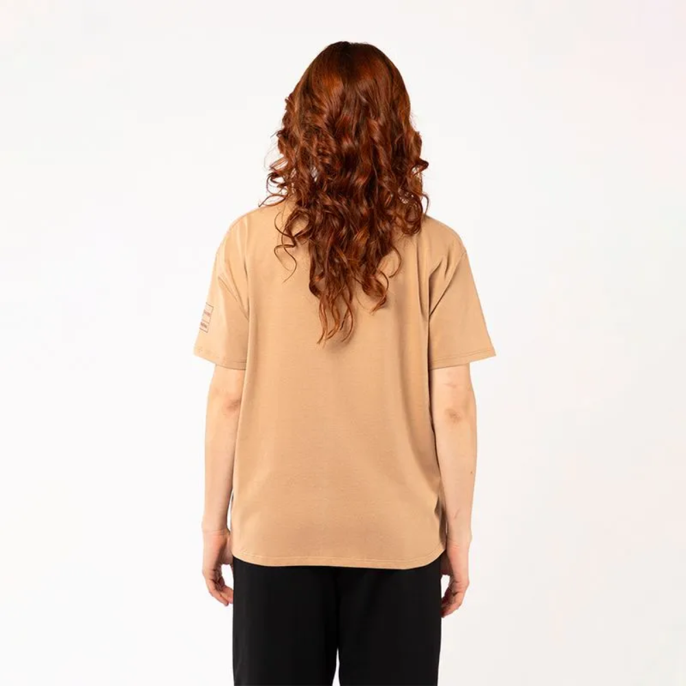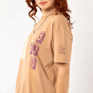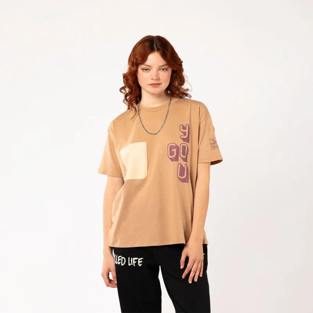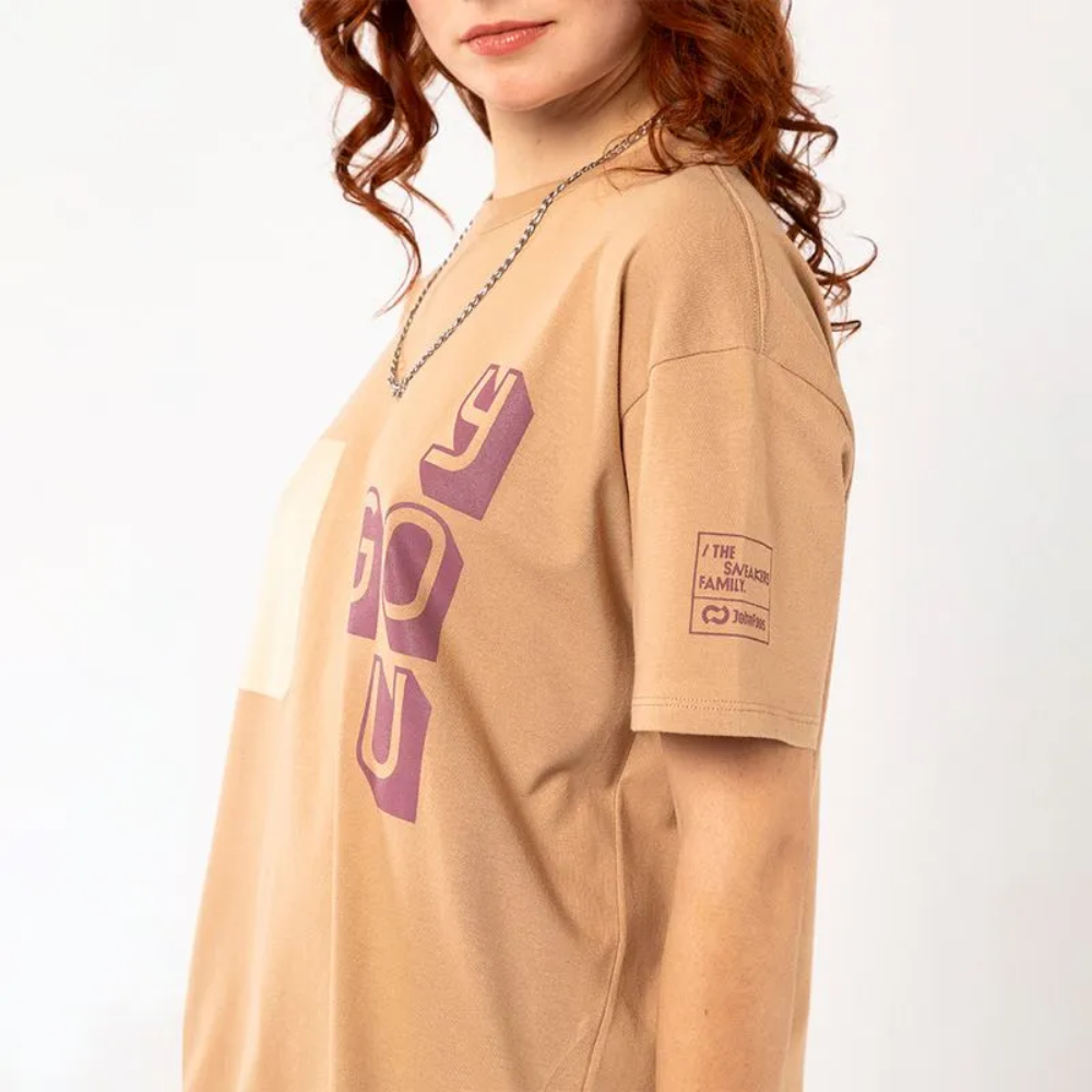 Fit corto, print en beige y borravino, una paleta ocre que marca tendencia. Hecha de jersey de algodón peinado y para expresarte sin filtros.