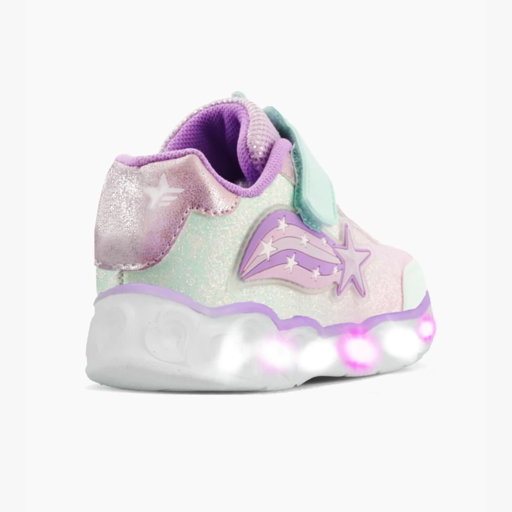 Modelo de diseño deportivo con luz al pisar ideales para el día a día, capellada confeccionada en materiales sinteticos estampados. Sistema de ajuste con abrojo y elástico. Lengueta acolchonada de mesh, puntera y talón reforzados. Suela de EVA ultraliviana con luz bicolor al pisar