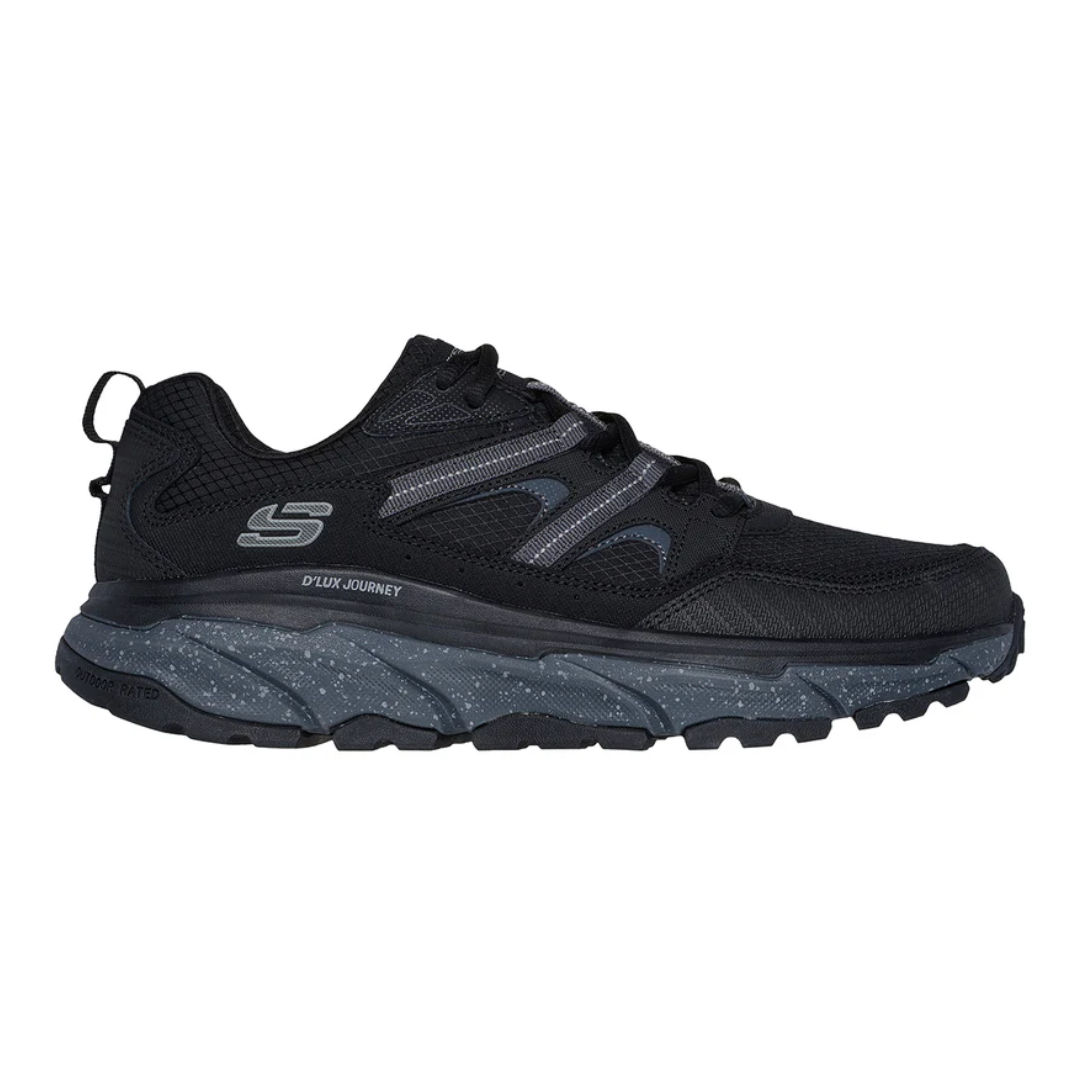 Da lo mejor de ti con un estilo clásico actualizado para los senderos con Skechers Relaxed Fit®: D’Lux Journey. Este calzado informal para senderos al aire libre con cordones presenta una parte superior sintética y de punto diseñado con una plantilla acolchada Skechers Air-Cooled Memory Foam®.